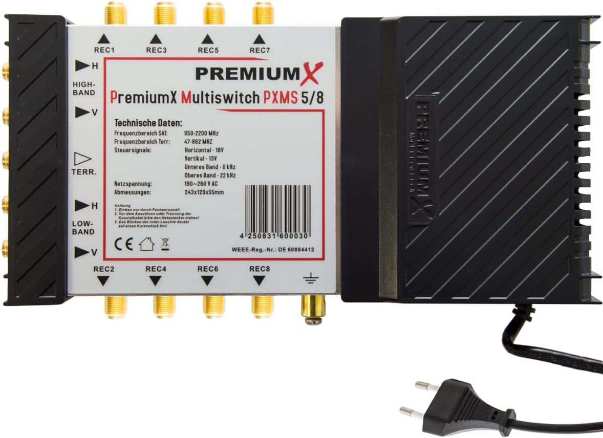 PremiumX PXMS 5/8 Multischalter mit Netzteil Multiswitch 1 SAT für 8 Teilnehmer